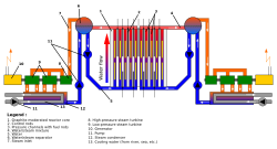 1. Çernobıl qəzası ilə bağlı bəzi hesabatlarda qrafitin yanğına kömək etməsi yazılsada, qrafitin özünün yanması elə də mümkün deyil. General Atomics veb-saytına görə: "Qrafitin yanmasının kömürə bənzər olduğu əsasən yanlış bir şəkildə qəbul edilir. Xeyli sayda sınaq və hesablama, yüksək saflıqda, nüvə dərəcəli qrafitləri yandırmağın hardasa imkansız olduğunu göstərmişdir." Eyni mənbə Çernobıl üçün deyir: "Qrafit qəzanın davam etməsində və ya nəticəsində çox az iştirak edib və ya heç iştirak etməyib. Çernobıl qəzası zamanı görülən qırmızı parlaqlıq, bəzilərinin yanlış qəbul etdiyi kimi, böyük ölçüdə qrafit yanğını olmayan, 700°C dərəcədə qrafit üçün gözlənilən parlaqlıq rəngi idi." Bənzər formada, nüvə fizikaçısı Yevgeni Velixov, qəzadan iki həftə sonra, "İndiyənədək bir fəlakət ehtimalı doğrudanda var idi: reaktorun böyük miqdarda yanacağı və qrafiti közərmiş halda idi." dedi. Yəni uran yanacağın içində yaranan bütün normal nüvə çürümə istiliyi (normal halda ehtiyat soyuducu nasosları ilə ziyan görməmiş bir reaktorda əldə edilən istilik) bunun yerinə yanacağın özü ilə və ona təmas edən qrafitin edilməsindən məsul idi. Bu tez-tez alıntı edilən qiymətləndirməyə ziddir. Qrafit təməldə hava ilə kimyəvi olaraq oksidləşdirici olduğu üçün qırmızı-isti idi.