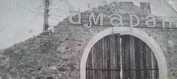 "İmarət"in Kommunist küçəsi tərəfdən olan əsas qapısında milli ornamentlərlə "İmarət" yazısı