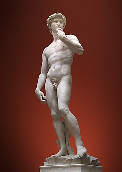 İntibah dövrünün dahi xadimlərindən olan Mikelancelo (1475-1564) heykəltaraş, rəssam, memar, hərbi mühəndis və şair idi. O, Florensiyanın azadlığı uğrunda mübarizədə iştirak etmiş, müdafiə qurğularının tikilməsinə rəhbərlik etmişdi. O, güclü bədənə, yenilməz iradəyə malik gənc insanların heykəllərini yaradırdı. O, 5,5 m hündürlüyündə olan "David" heykəlini mərmərdən yonmuşdu. Bu əsərdə nəhənglərlə vuruşan çoban təsvir olunmuşdu. "David" heykəli Florensiyanın mərkəzində qoyulmuşdu və şəhərin himayəçisi sayılırdı. Mikelancelo Romada Müqəddəs Pyotr kilsəsinin tikintisində də iştirak etmişdi.