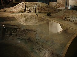 Məbədin köçürmədən əvvəlki və sonrakı yerini, həmçinin su anbarının səviyyəsini nümayiş etdirən model