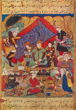 Əmir Teymur Bəlx döyüşündə (1370). Mirxvənd Ravzat əl-Səfa tərəfindən çəkilmişdir. Britaniya kitabxanasında saxlanılır.