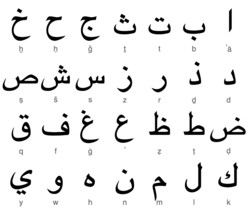Ərəb əlifbası 28 hərfdən ibarətdir. Bəzi əlifbalarda "lam-əlif" (لا) 29-cu hərf olaraq göstərilmişdir. Ərəb hərflər iki yerə bölünürlər:
