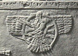Bu simvol Assur sənətində geniş yayılmış və xüsusilə kral relyeflərində, möhürlərdə və saray divarlarında öz əksini tapmışdır.