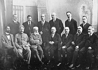 I Nəsib bəy Yusifbəyli hökumətinin üzvləri. Oturanlar: Aslan bəy Səfikürdski, Xudadat bəy Məlik-Aslanov, Səməd bəy Mehmandarov, Nəsib bəy Yusifbəyli, Məmməd Yusif Cəfərov, Ə. Həsənov, Abram Dastakyan; Ayaqüstə olanlar: X. Amaspur, Rəşid xan Qaplanov, Ağa Əminov, Camo bəy Hacınski, Viktor Klenevski, Nəriman bəy Nərimanbəyli.