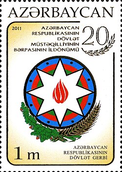 2011-ci ilin oktyabr ayının 11-də Bakı şəhərində Azərbaycan Respublikası Rabitə və İnformasiya Texnologiyaları Nazirliyinin "Azərmarka" şirkəti tərəfindən Azərbaycan Respublikasının Dövlət Müstəqilliyinin bərpasının 20-ci ildönümünə həsr olunmuş yeni poçt markaları təqdim edilmişdir. Qiyməti 1 manat, tirajı isə 5000 ədəd olan həmin markalardan biri Azərbaycan Respublikasının Dövlət Gerbinə həsr olunmuşdur.