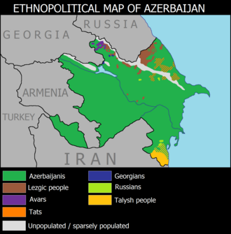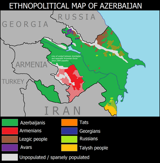 Azərbaycanın etnosiyasi xəritəsi (1994-2020, Birinci Qarabağ müharibəsidən sonrakı və İkinci Qarabağ müharibəsidən əvvəlki dövrə aiddir).