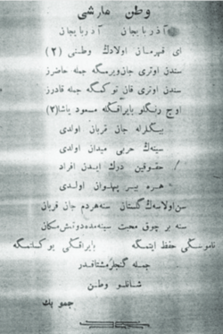 "Milli nəğmələr" (Bakı. 1919, səh. 22) kitabında "Vətən marşı" başlığı altında dərc edilmiş mətnin orijinalı belədir:
