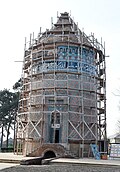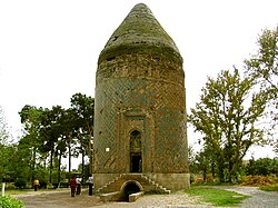 Soldan sağa: Bərdə türbəsi restavrasiyadan əvvəl, restavrasiya zamanı və sonra | ||||||||||