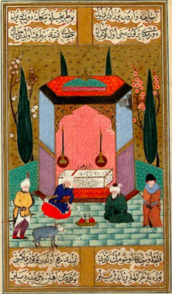 | Burada Məhəmmədin nəslindən olan, altıncı imam Cəfər Sadiqin nəvəsi, yeddinci imam Musa əl-Kazımın qızı, səkkizinci imam Əli ər-Rzanın bacısı dəfn olunub. |