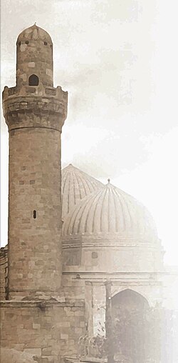 | Bakının yaxınlığındakı... məscid XIII əsrin sonlarında inşa edilmişdir. Nisbətən yaxın bir zamanda dağıdılıb və qısa təsvir və bir neçə fotolardan məlumdur... Boris Dorn və İlyaz Berezin tərəfindən adı çəkilən şərq fasadındakı inşaat dövrünə aid yazının məscidin II Axsitanın oğlu II Fərruxzadın dövründə tikilməsini bildirməsi məscidi onun dövrünə, hicri ilə 660-665-ci illərə (1264-65 — 1266-67) aid etməyə imkan verir. |