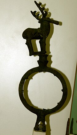 Cəlilabad rayonu Uzuntəpə kəndi ərazisindəki Uzuntəpə yaşayış yerindən aşkarlanmış Tunc dövrünə aid mis-tunc qarışığından hazırlanmış maral formalı hakimiyyət simvolu. Milli Azərbaycan Tarixi Muzeyi
