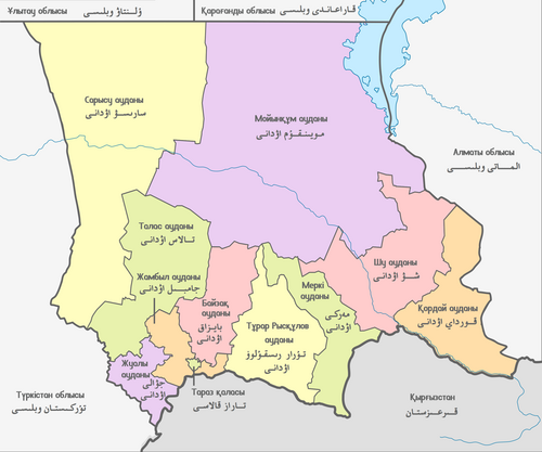 Vilayət tabeli Taraz və rayon tabeli Karatau, Canatas və Şu şəhərləri.