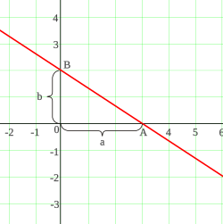 Şəkildə göstərildiyi kimi düz xətt koordinat oxlardan uyğun olaraq parçalarını kəsib keçir. Onda A, B olar. Bu nöqtələri nəzərə alaraq Düz xəttin parçalarla tənliyi aşağıdakı kimi verilir: