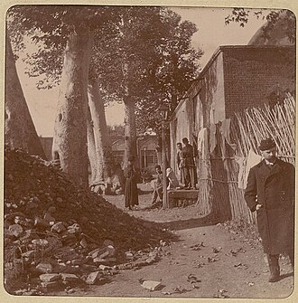 Fransız arxeoloq Jozef de Bay tərəfindən 1900-cü ildə Şah Abbas məscidinin həyətində çəkilmiş fotonun sağ tərəfində və mərkəzdəki ağacların arxasında Gəncə mədrəsəsinin bir hissəsi görünür.