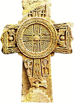 " Zəng qülləsinin pilləkənli əsasında insan boyu ölçüsündə Məsihin çarmıxa çəkildiyi xaça oxşar iri bir xaçdaş ucaldılmışdır. Xaçdaşın qollarında “İsa Məsih” sözü yazılmış, aşağısında isə 1639-cu il tarixi qeyd edilmişdir. Monastırı ziyarətə gələn hər kəs bu xaçdaşın incə daş naxışlarına heyran olur. "