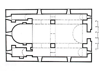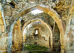 Əsas kilsə binası, yarımdairəvi altar apsidasına malik uzadılmış düzbucaqlı formasına malikdir. İkisi müstəqil dayanan ikisi isə divar qarşısında ucaldılmış sütunlar və onlar üzərində ucaldılmış oxvari tağlar kilsənin interyerini üç nefə bölür.