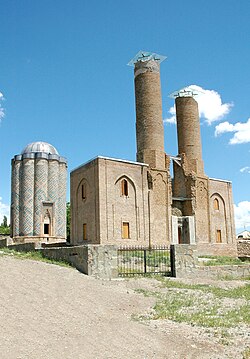 Orta əsrlərə aid Qarabağlar memarlıq kompleksi Azərbaycan memarlıq abidələri içərisində mühüm yer tutur. Memarlıq kompleksi 2 qoşa minarədən, 16 m hündürlükdə olan kərpic türbədən ibarətdir. Qoşa minarənin arasında dini bina qalıqları da vardır. Qoşa minarənin 12 əsrin sonu və 13 əsrin əvvəllərində tikildiyi ehtimal olunur. Minarələri bir-birinə bağlayan baştağ isə 14 əsrə aiddir. baş tağın üzərində Elxani hökmdarı Hülaku xanın arvadı Quti xatunun adı yazıldığından, onun Quti xatunun şərəfinə tikildiyi güman edilir. Qarabağlar türbə kompleksi Azərbaycan xalqının ümummilli lideri Heydər Əliyevin tövsiyəsi ilə ümumdünya bankının ayırdığı vəsait hesabına təmir edilmişdir (2004).