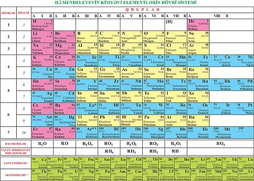 D.İ.Mendeleyevin tərtib etdiyi dövri cədvəlin qısa variantı