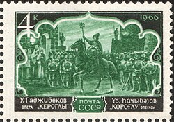 "Koroğlu" operasına həsr olunmuş SSRİ poçt markası (1966).