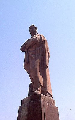 1959-cu ildə Bakı Dəmir Yolu Vağzalının qarşısında meydanda dramaturqa abidə qoyulması barədə qərar qəbul olunur. Eyni ildə burada heykəlin bu ərazidə ucaldılması haqqında məlumatı ehtiva edən daş yerləşdirir. Daha sonra keçirilən ən yaxşı layihə müsabiqəsini qazandığı üçün bu iş Mirələsgər Mirqasımova tapşırılır. Heykəltəraş dərhal işə başlasa da, Nikita Xruşşovun rəhbərliyi dövründə vüsət almış minimalizm arzusu və "həddən artıq olanlara" qarşı mübarizə uzun müddət bu işi dayandırır. 1970-ci illərin sonlarında layihə yenidən davam etdirilsə də, bir müddət sonra yenidən dondurulur. Çox keçmədən Azərbaycan KP MK-nın birinci katibi Heydər Əliyev özü bu layihəni öhdəliyinə götürür və 1979-cu ildlə Mirqasımovun emalatxanasına gələrək əsərin eskizləri ilə şəxsən tanış olur. Mirqasımov layihə üzərində işləyərkən son dərəcə stresli və gərgin olduğu üçün heykəli başa çatdırarkən öz emalatxanasında ürək infarktı keçirir. Bu zaman Heydər Əliyevin sərəncamı ilə onun sağlamlığına baş katibin şəxsi həkimi özü nəzarət edir. Tezliklə Mirqasımov yaradıcılığının bəlkə də ən vacib işlərindən biri olan heykəl tamamlanır. Abidə 1982-ci il martın 23-də təmtəraqlı mərasimlə Heydər Əliyevin özü tərəfindən açılmışdır. Həmin il Azərbaycan SSR Ali Sovetinin 1 dekabr tarixli fərmanı ilə Mirqasımov Azərbaycan SSR xalq rəssamı fəxri adına layiq görülmüşdür.