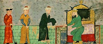 Nizami Eldənizlər dövlətinin hökmdarı Qızıl Arslanın qəbulunda. 1481-ci ilə aid əlyazmadan miniatür, Uolters Sənət Muzeyi