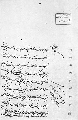 İxlas yolunda rəsixül-əqidə və şücaət və mübarizə yolunda bəyənilmiş Hacı Məniçöhr xan! Təvəccöh və inayətim tərəfinə bihədd bilinib, özüki, əksər xatirimdə belə sən xüsusən bəzi feyzlü məclislərimizə və məsumin – əleyhimüssəlam – olan ayinəyi-zəmir imamlarımızda, inşallah yaxşı vəclə hüzurumuza yetmək istəyi var. Mehribanlıq lazımdır, sən yerkötürüb yola salasan Dərviş Mustafa yoldaşı ilə birlikdə Şirvan tərəfindən öz vilayətinə getmək iradəsindədir. Vəssəlam – mehrindən saf.