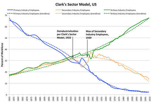 ABŞ iqtisadiyyatı üçün Kolin Klarkın Sektor modeli 1850–2009