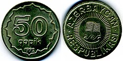 1991-ci ildə Azərbaycan Respublikasının müstəqilliyi bərpa edildikdən sonra, 1992-ci və 1993-cü illərdə ölkənin yeni pul vahidi olan Azərbaycan manatı ilə qəpik 5, 10, 20 və 50 nominallı sikkələr olaraq istifadəyə verilib.