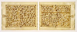 Alimlər tərəfindən "Ma VI 165" kod adı ilə qeydə alınmış bu Quran nüsxəsi 656-cı ildə xəlifə seçildikdən sonra İslam dövlətinin mərkəzini Kufəyə köçürən İmam Əli ibn Əbi Talib vasitəsilə geniş yayılmış "Kufi xətti" ilə yazılıb. "Medieval Histories Magazine"-in ("Orta əsrlər tarixi" jurnalı) hesablamalarına görə, bu əlyazma 95,4% statistik ehtimalla 649–675-ci illərə aid edilə bilər.
