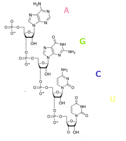 Eynilə DNT (deoksiribonuklein turşusu) kimi RNT hər bir keçidin bir nukleotid adlandığı uzun bir zəncirdən ibarətdir. Hər bir nukleotid azot əsasları,riboza şəkər və fosfat qrupundan ibarətdir. Nukleotid ardıcıllığı RNT-yə genetik məlumatları kodlamağa imkan verir. Bütün hüceyrə orqanizmləri protein sintezini proqramlaşdırmaq üçün RNT (MRNT) istifadə edir.