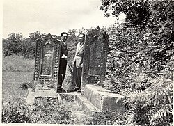 Saleh Qazıyev (sağda) Qəbələdə İsmayıl bəy Qutqaşınlının qəbri başınsa