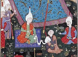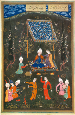 Sam Mirza (kneeling) receiving a Qizilbash turban from his brother and suzerain Shah Tahmasp I, dated təq. 1531.