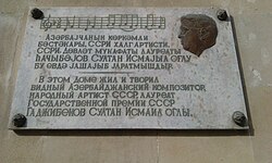 Soltan Hacıbəyovun xatirə lövhəsi (Bakı)