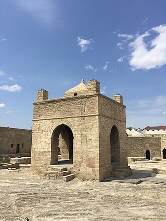 Atəşgah məbədi XVII–XVIII əsrlərdə təbii qazların çıxdığı "əbədi", sönməz alovların yerində inşa edilmiş od məbədidir. İndiki ibadətgah da atəşpərəstlərin-zərdüştlərin qədim məbədlərinin yerində tikilmişdir. Bu məbədlər təqribən II–III əsrlərdə inşa edilmişdir. XVII əsrdə məbədin ətrafında bir-birinin yanında ibadətxana, 26 hücrə və karvansara inşa edilmişdir. Vaxtilə hücrələrdə müxtəlif dini ayinlərin icra olunması və oda sitayiş edən kahinlərin fəaliyyəti üçün lazımi şərait də olmuşdur. Məbədə gələn zəvvarlar karvansarada istirahət imkanı da əldə etmişlər. XVIII əsrin əvvəlində məbəd artıq bizim dövrə gəlib çıxdığı şəkli almışdır.