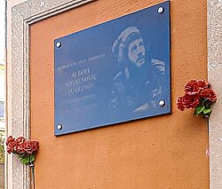Suraxanıda Albert Aqarunovun xatirə lövhəsi.