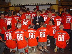 Bakıda Tofiq Bəhramovun oğlu ingilis futbol azarkeşləri ilə. 2004-cü il
