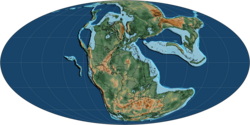 Dövrün sonlarına doğru Paleozoy eranın sonunda əmələ gəlmiş yeganə qitə olan Pangeya parçalanmağa başlayır. Parçalanma nəticəsində Şimali Amerika və Şimali Avropa Pangeyadan ayrıldılar. Pangeanın əhatə etdiyi dövrlərdə mövcud olan quraq və kontinental iqlim materikin daxili hissələrində dəyişilərək öz yerini səhra iqliminə buraxır.