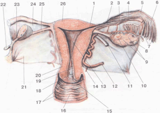 | Arteriya | lat. art. uterinae, lat. art. ovarica |