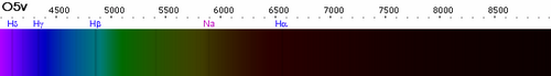 O tipli ulduzlar O5-dən O9-a qədər güclənərək, görkəmli ionlaşmış (Si IV, O III, N III və C III) və nöqtəli helyum xəttlərinə və görkəmli hidrogen Balmer xəttlərinə, baxmayaraq ki, sonrakı növlərdə olduğu kimi güclü deyil. Onlar çox kütlü olduğundan, O tipli ulduzlar çox isti nüvələrə sahibdirlər və hidrogen yanacağı vasitəsilə çox tez yandırırlar, buna görə də əsas ardıcıllığı tərk edən ilk ulduzlardır.