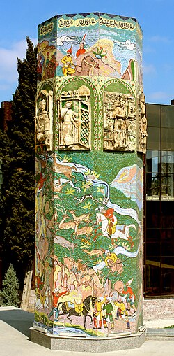 Nizaminin vətəni Gəncə şəhərində "Xəmsə"yə qoyulmuş heykəllər.