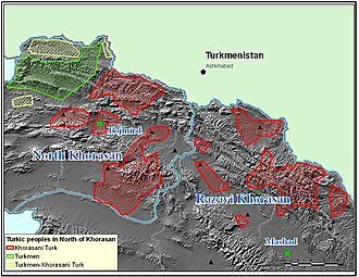 Xorasan türkləri umumən bocnurd, şirvan, bam və səfi abad quzey xorasan iyalətindən və bəzi də quçan, dərgəz, cəğtay, cuvin, səbzivar, neyşabur rəzəvi xorasan dan və ayrica ramiyan, minadəşt şəhərlərdə və azadşəhr (gulistan iyalətində bir şəhər) sohbət olur.