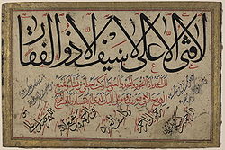 Ərəbcədən tərcümədə "Əlidən başqa igid, Zülfüqardan başqa qılınc yoxdur." mənasını verən ərəbcə cümlə.