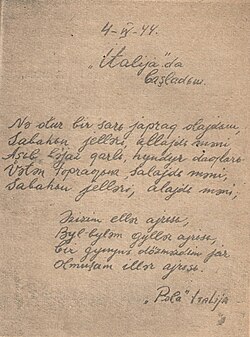 1944-cü ilin aprelində Mehdi Hüseynzadənin latın qrafikalı əlifba yazdığı bir şeir