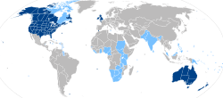 BMT-nin altı rəsmi və işçi dilindən biridir. İngilislərin təbii dili, İngiltərənin, faktiki Böyük Britaniyanın, ABŞ (31 ştatının rəsmi dili), İrlandiyanın, Kanadanın və Maltanın iki rəsmi dilindən biri, Avstraliyanın, Yeni Zelandiyanın rəsmi dili. O, Asiya (məsələn Hindistan, Pakistan və s.) və Afrikanın bəzi dövrlərində rəsmi dil kimi istifadə edilib. Linqvistikada ingilis dilində danışanları anqlofon adlanırlar, Kanadada bu termin siyasi mənada işlədilir.