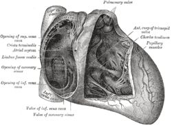 • Yuxarı və aşağı boş venalardan başqa sağ qulaqcığa bir də ürəyin tac cibi – (lat. sinus coronarius) və ürəyin kiçik venalarının dəlikləri (ağızları) – (lat. foramina venarum minimarum (Thebesii – BNA)) açılır. Ürəyin tac cibi aşağı boş vena ağzı ilə sağ qulaqcıq-mədəcik dəliyinin arasında yerləşir və endokard təbəqəsindən əmələ gəlmiş kiçik bir qapaqcıq – (lat. valvula sinus coronarii (Thebesii – BNA)) vasitəsilə əhatə olunmuşdur. Bu qapağın əhəmiyyəti bundadır ki, qulaqcıq sistola edərkən tac cibi örtərək qanın ürəyin xüsusi venalarına doğru qayıtmasına mane olsun.